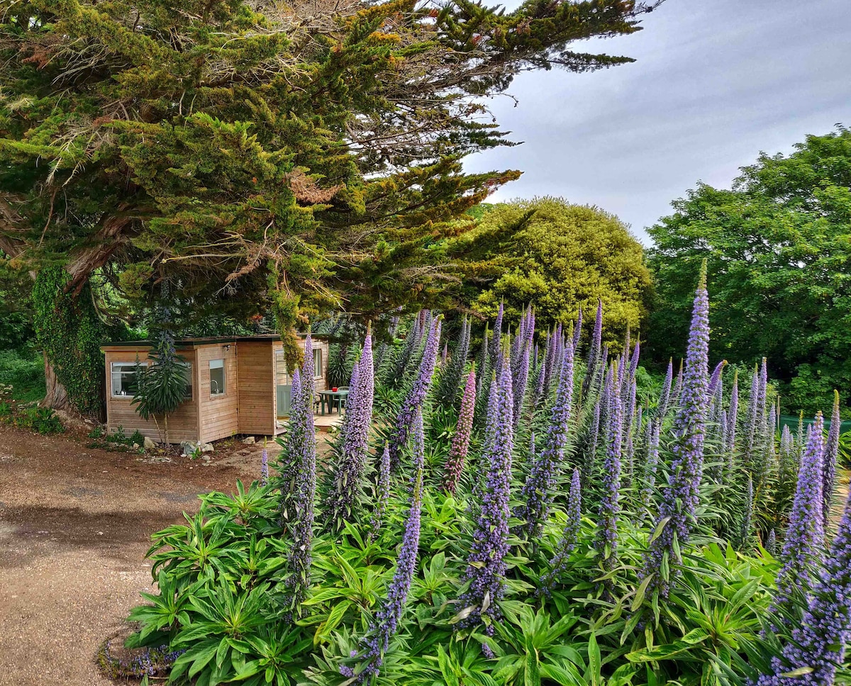 The Hikers' Hut at Highcliff, is a magical timber hut with stunning sea views over the east coast of the Isle of Wight. Situated on the cliff edge 100m above the shoreline between Shanklin and Ventnor, the famous Isle of Wight Coastal Path is at the front gate. The Hut borders a National Trust field and is a perfect cabin for hikers, bird watchers, beach goers and nature lovers. With its own separate entrance and garden, it sits in the apple orchard of Highcliff Estate, Luccombe.