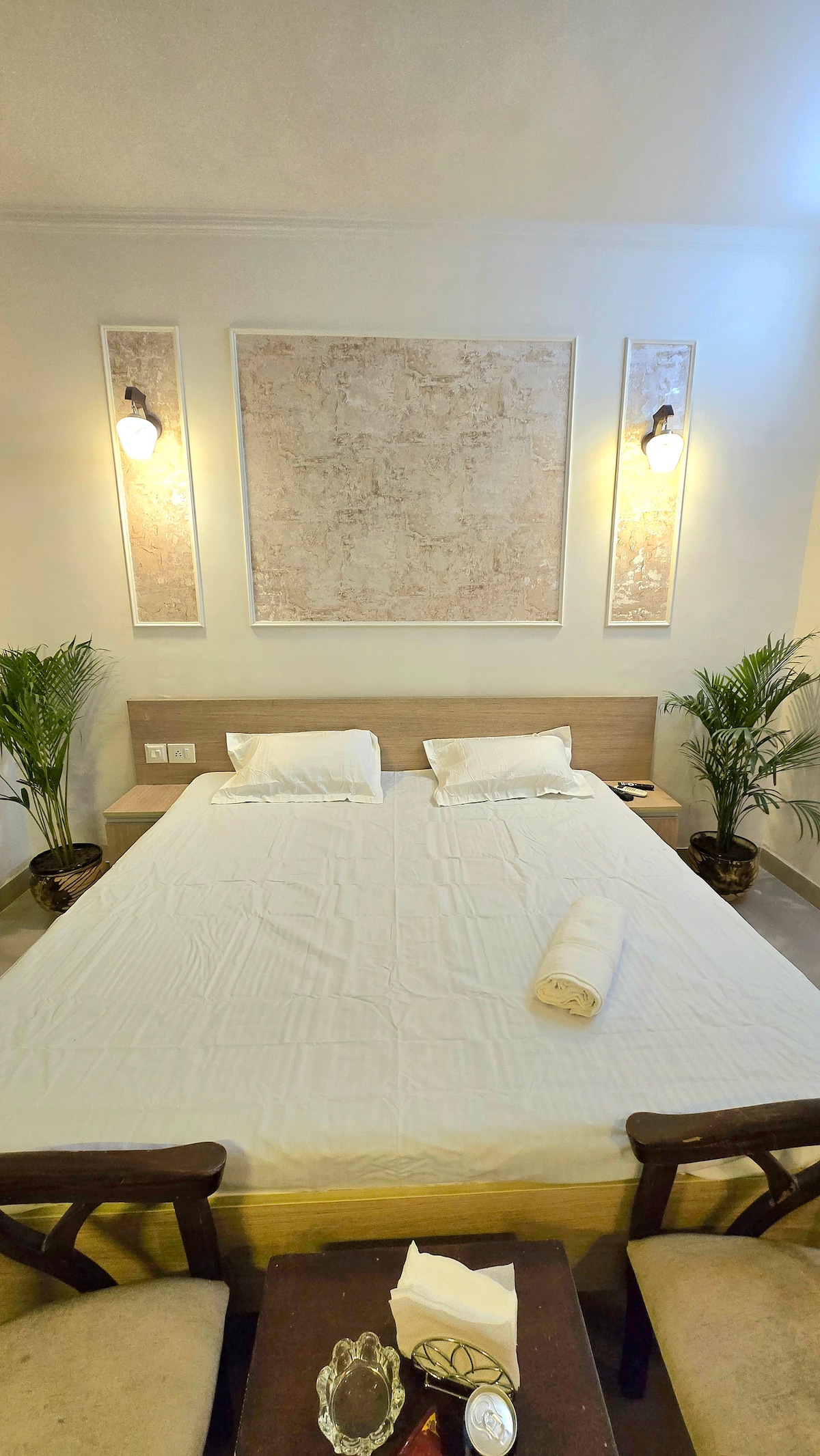 The first 2 Bhk Apartment that meets every requirements ✨ - 2 Bedrooms ( Master bedroom, second bedroom) - 2 King Sized Beds - A spacious living area with a comfortable seating arrangement - 2 bathrooms ( 1 in each of the bedrooms) - Kitchenette (with all cooking basics available and amenities stocked up, it is the perfect place to prepare your favourite meals) - A Shared Balcony area connecting with the apartment which can be the perfect space for your evening strolls Book Now!!
