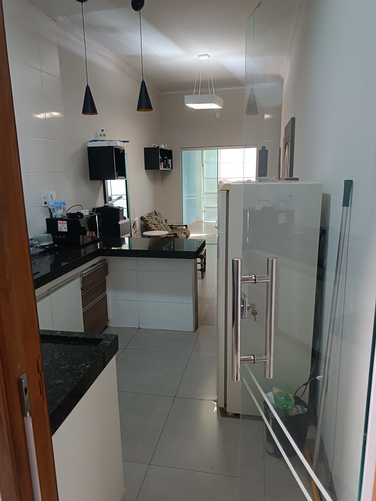 Cozy, good neighbors, close to downtown, airy, 3 bathrooms (one in the bedroom suite), plus two bedrooms for a total of 03. The bedrooms are not shared. A kiosk, garage and space for 03 cars. Double bed (amount charged per guest). External camera on the sidewalk at the entrance to the space.