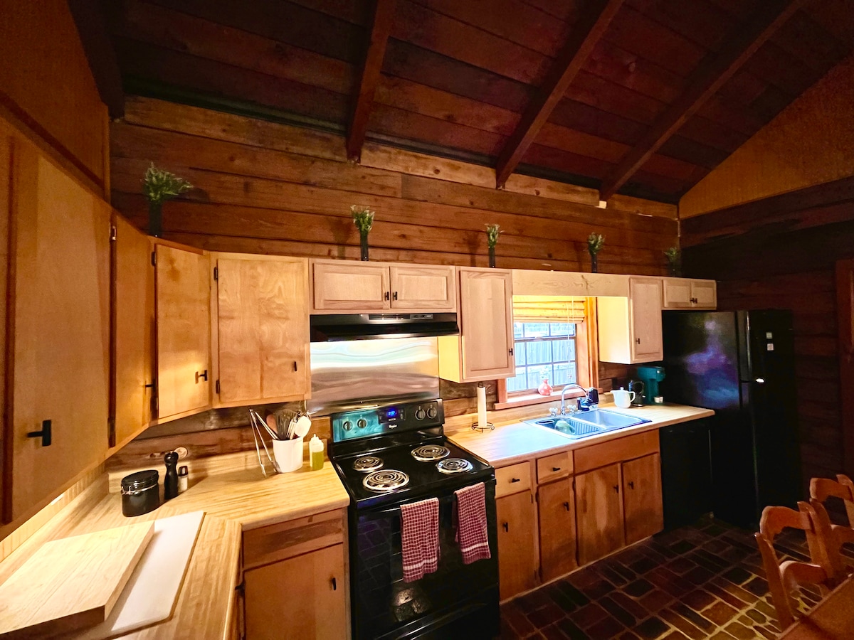 Our spacious and unique log cabin on the coast is perfect for families, friends traveling together, a couples getaway, or a single person's landing pad. The home is a two story true log cabin with 2 king beds, a fully stocked kitchen, and all of the amenities of a great stay with the classic details of a log home. We have seating for the family around the table, excellent Wi-Fi, a great fire ring out front, and so much more. We're only a few blocks from the beach and right off the Davis bayou!
