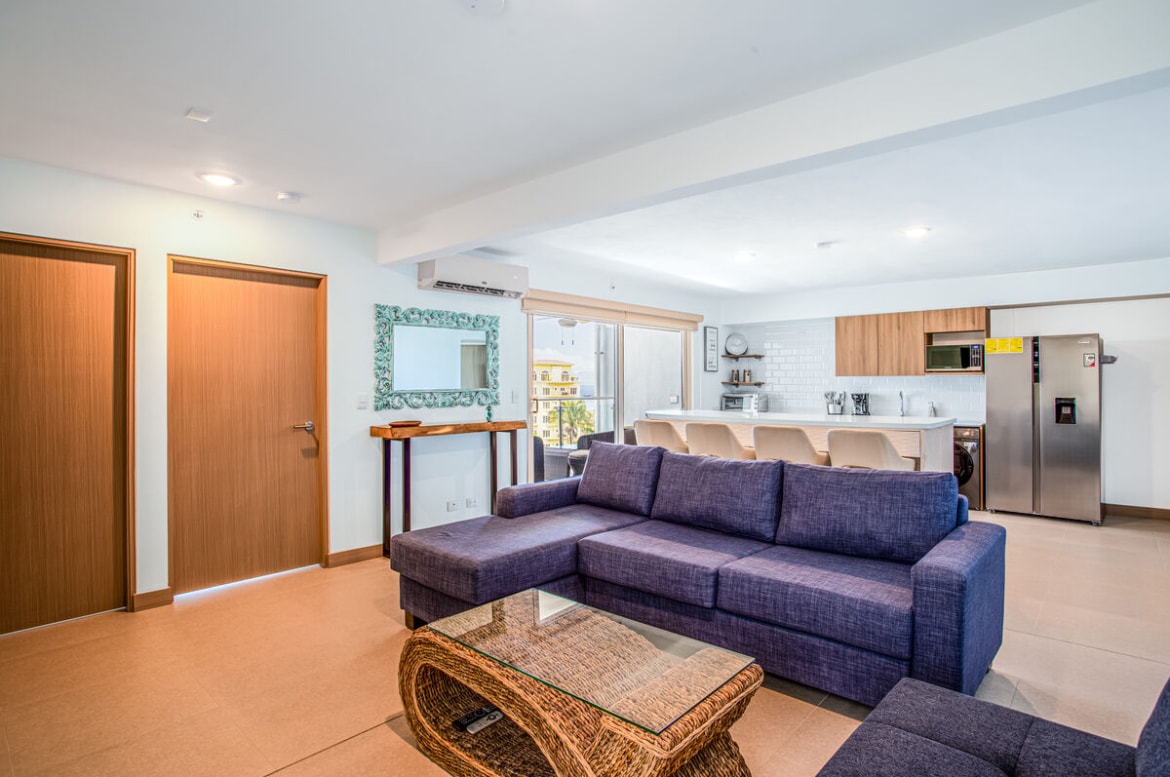 Remodeled apartment with contemporary decor, ideal for groups of 4, spectacular ocean and tropical forest views. Direct and private access to Playa Blanca. It includes a Master bedroom, with a king-size bed, and a queen sofa bed in the living room. Full AC, equipped with all appliances, dishwasher, microwave, oven, refrigerator, coffee maker, blender. It also includes cleaning. It also has high speed WI-FI. Telephone and cable TV. Located on a third floor without access to an elevator.