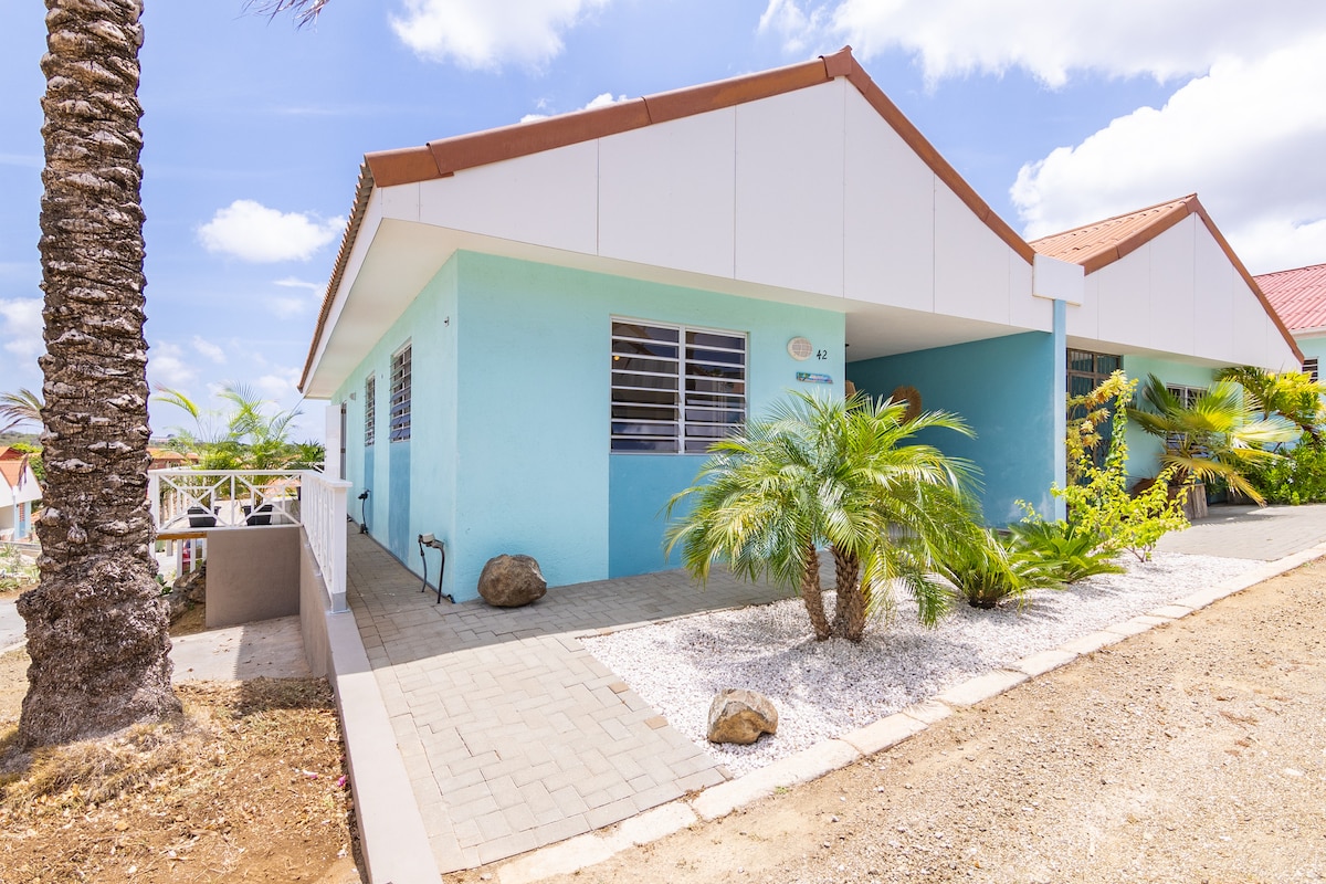 Zodra je het appartement binnenkomt via de grote schuifpui voel je je direct thuis. Je beschikt over een volledig ingerichte keuken met eiland. Door de grote ramen wordt de woonkamer verbonden met de tuin. Stap in je een eigen plungepool om af te koelen na een dagje strand. De tropische tuin zorgt voor privacy en de Caribbean vibe. Verder zijn er 2 slaapkamers en een moderne badkamer met een heerlijke douche.