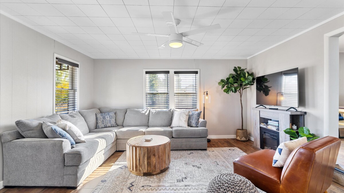 If you can imagine a getaway in a uniquely designed tiny house that is built on 60+ acres of wide open and stunning landscape, then you have captured a glimpse of this rare find. This beautiful tiny house is all yours to enjoy such amenities as a glass garage door that can be opened to experience nature from your kitchen table or a fireplace to cozy up to when the temps are cold. You can enjoy coffee in the morning from your private deck and keep your feet warm in the winter with heated floors.