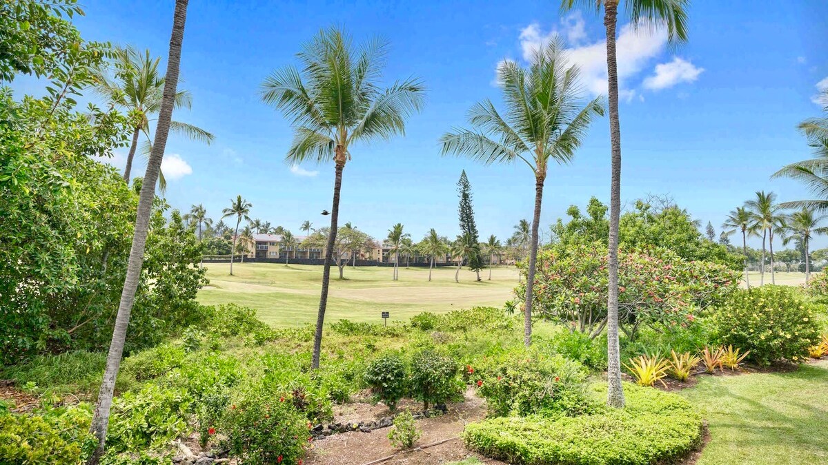 Note: THE AIR CONDITIONING SYSTEM WILL BE AVAILABLE ON DEC 4 2025 Quiet. We love this beautiful and large (1200 sqft) condo with a big wrap around lanai and expansive views of fairway 13 of the Kona Country Club. We are on the 2nd floor of building 7 and super close to the ocean. Keauhou Surf and Racquet Club is a gated resort. It includes 3 lit tennis courts, a large swimming pool that can accommodate lap swimming, and several BBQs.