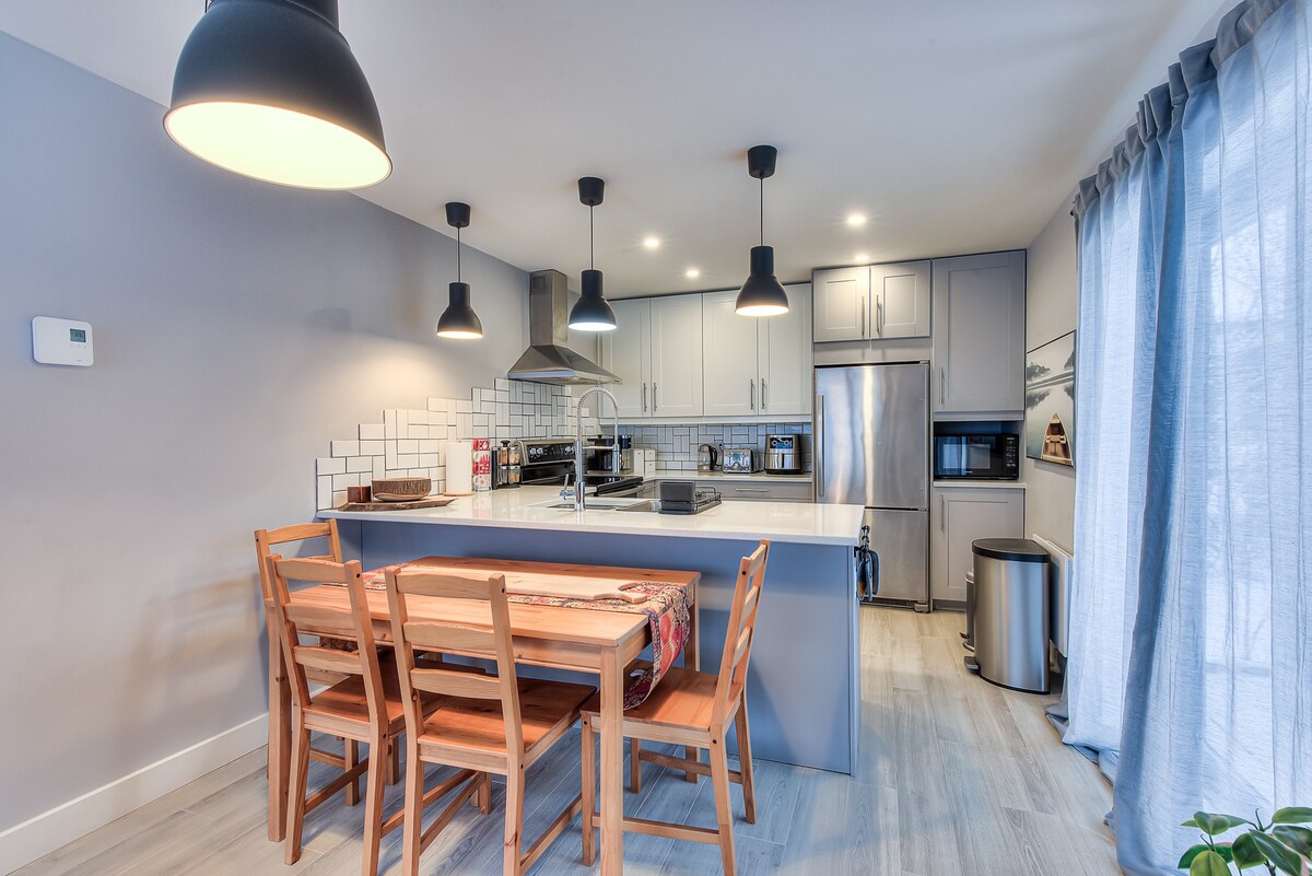 Beautiful, spacious, fully furnished 2-bedroom condo with 2 QUEEN beds including a PRIVATE OFFICE with a SAMSUNG computer screen included, offering you a beautiful, very bright and modern living space. This charming condo is located in the best area of Laval in Sainte-Dorothée. It is close to several services, amenities, parks, Highway 13, Méga Centre Notre-Dame which offers you one of the best places to shop and have a good time.