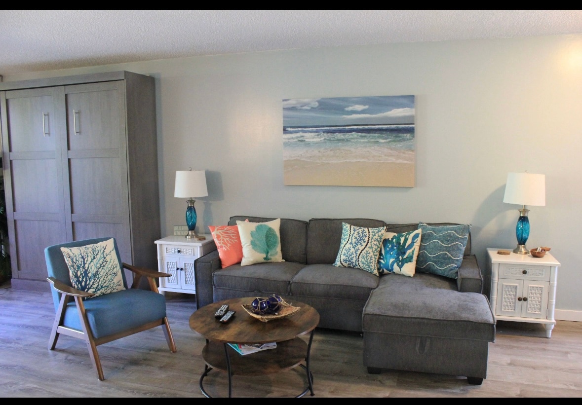 Remodeled ground floor, corner unit in exclusive Bld 11. Steps from beach! Whole home A/C (dual split in living room & window unit in bedroom). New cal king bed, queen sleeper sofa & mini twin in the living room. Sleeps up to 5. Super fast wifi. Private lanai steps out to expansive gardens & Twin Bridges. New living & dining furniture! 65” Smart tv. Unit is supplied w/extra amenities, suggested experiences & babysitting recommendations around the island to offer a fantastic & unforgettable stay!