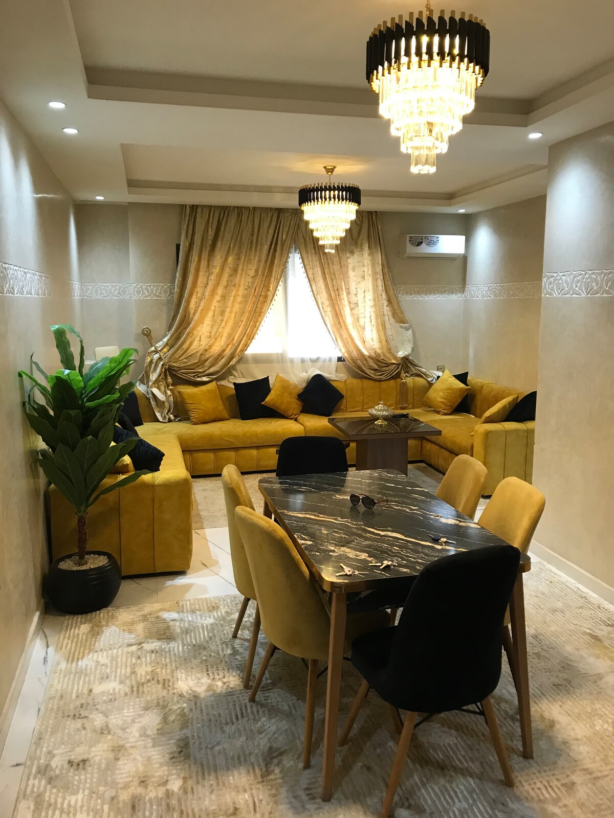Luxury apartment located in the heart of kenitra.close to all amenities (restaurants,markets,cafes)Quiet,very well furnished and equipped. In the beautiful Ville haute mall residence a 10 minutes walk from the TGV station. It consists of two bedrooms including a master suite with private bathroom, a living room with smart tv and high speed WiFi, a kitchen and a guest bathroom, the residence is secure and has an elevator as well as free underground parking.