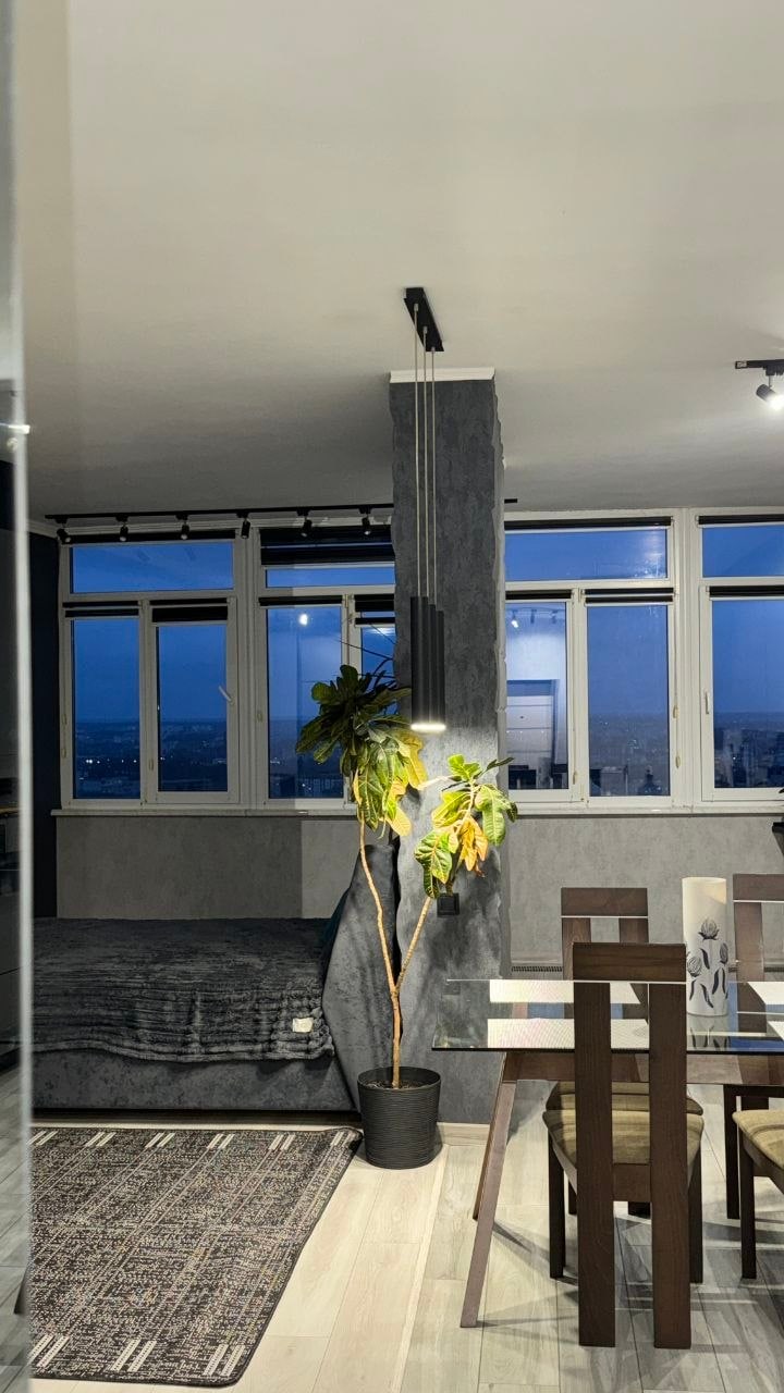 Stylish ENERGY-INDEPENDENT apartments with a cozy terrace and a beautiful view in the center of Khmelnytskyi. There is a private parking space on the territory of the residential complex. A silent Deye inverter is installed, so when the electricity is turned off, the apartment is fully powered on its own and you will not feel the lights go out. The apartment consists of a bedroom (king size bed), a living room with a sofa bed, a fully equipped kitchen with all the little things and appliances, as well as a bathroom with a tropical shower. Accommodates up to 3 people.