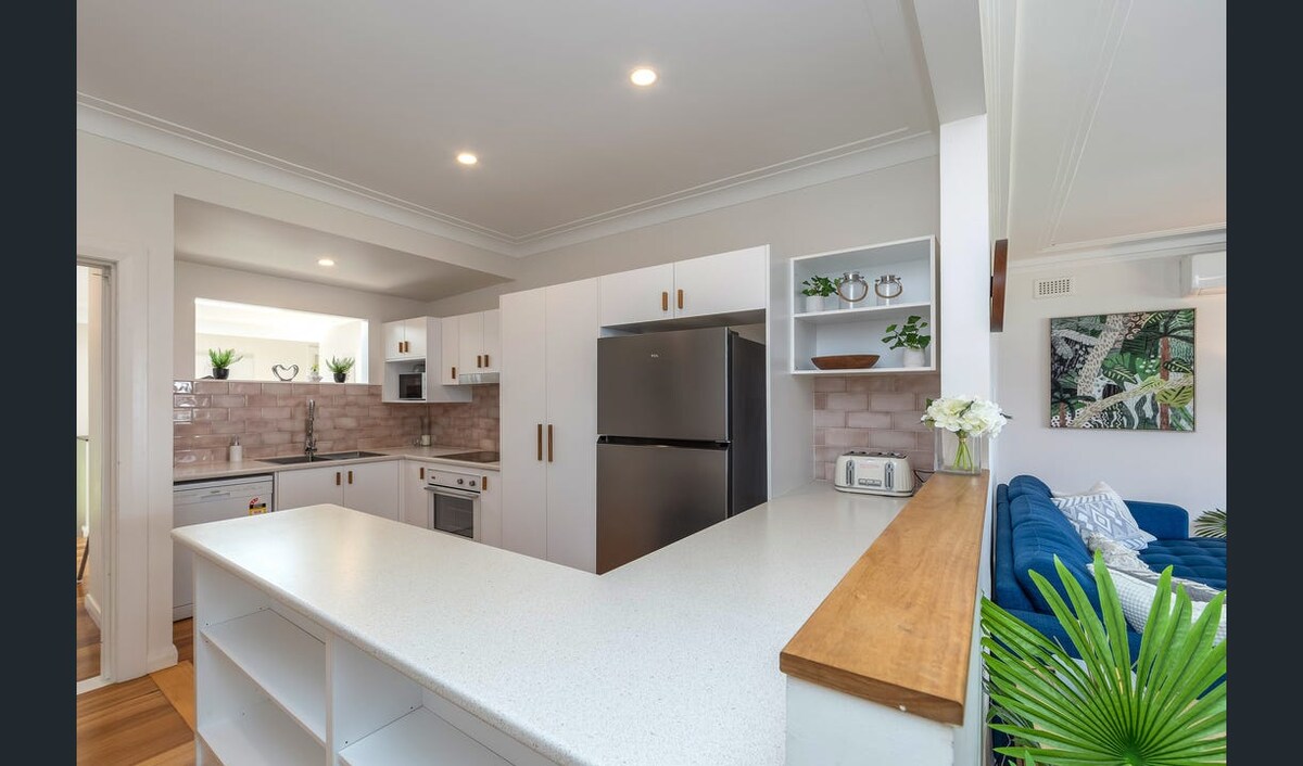 A truly luxurious couples retreat! This private villa style getaway has its own private access and and deck space to relax in and features an hot outdoor shower. Fitted out with quality furnishings and fixtures and is equiped with everything you need! Location really doesn't get better than this. You are across the road from beautiful Blue Lagoon Beach! With Bateau Bay Beach Cafe 150m away. The kitchen has a fridge, freezer, dishwasher, microwave and electric frypan. Note not cooktop or oven.