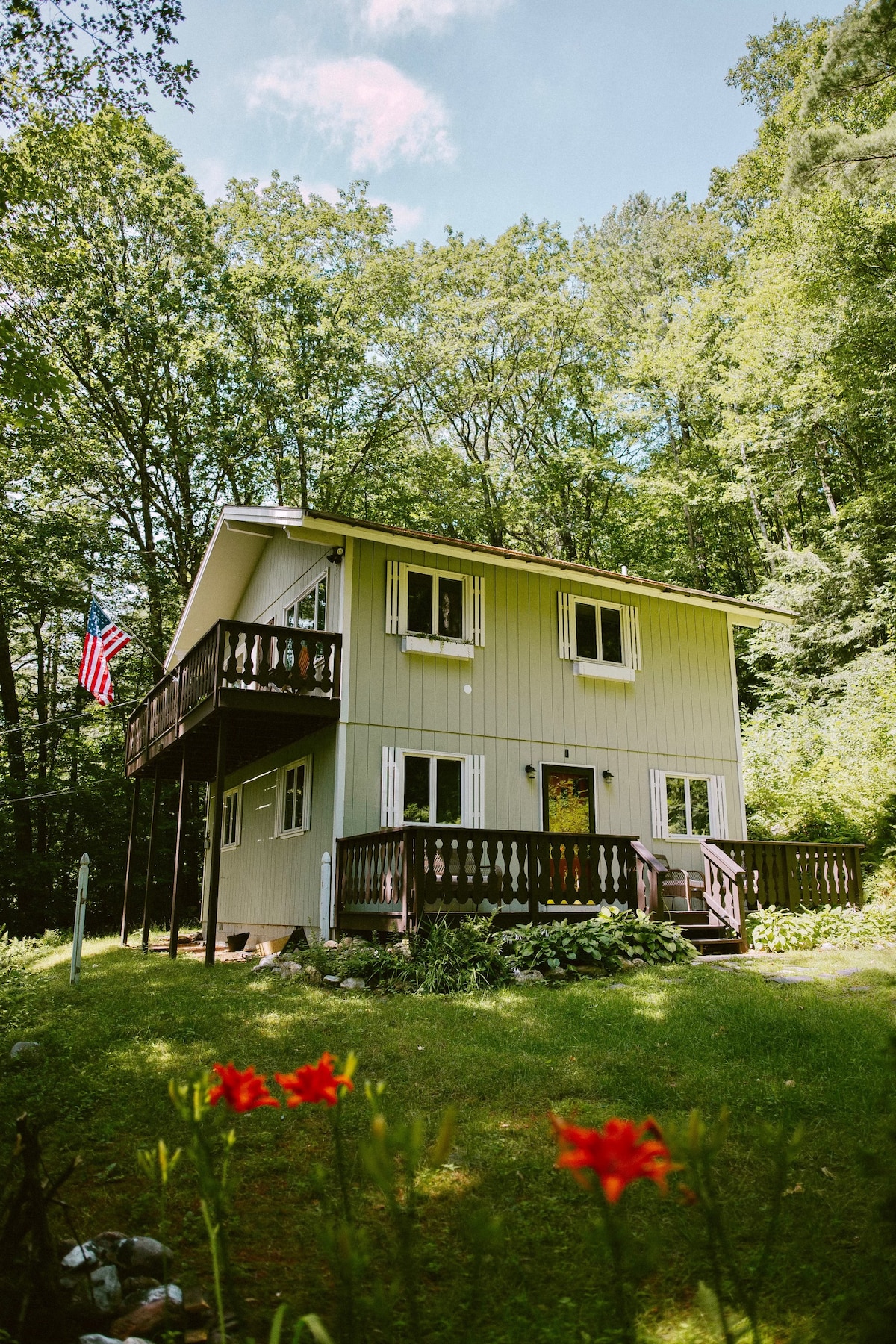 Welcome to Falcon House! A modern VT chalet w/sauna at the edge of a 60 acre forest ∙ Outdoor Finnish sauna, shower, yoga platform & hiking trails ∙ 5 min to Woodstock village, 20 min to ski Killington ∙ Spotlessly clean, tastefully furnished, well stocked with thoughtful amenities ∙2 bedrooms, 2 full baths. Lofted king master has ensuite +Lower level den w/double futon ∙ Chefs kitchen, fireplace, 2 TVs & WiFi ∙ Brookside deck w/BBQ & dining ∙Follow Falcon House on Social @falcon_house_vt