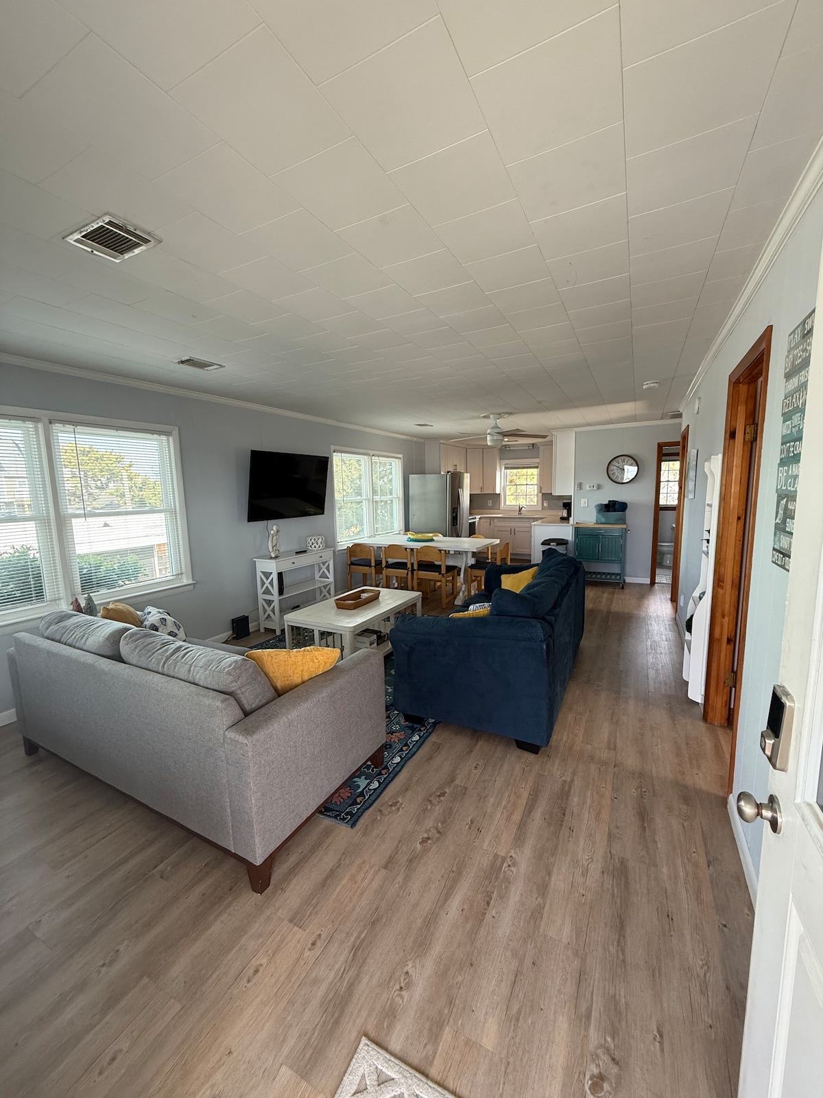 [updated floors and living room 2025 - pictures coming] Nestled in the heart of Southern Shores, our house is tucked away from the typical hustle and bustle of the resort areas of Kitty Hawk, Kill Devil Hills, and Duck, while being close enough for walk to the beach! A 15-minute bike ride into the town of Duck (2 bikes provided) will provide an afternoon of shopping, dining and drinking with your friends, with out the headache of traffic and parking.