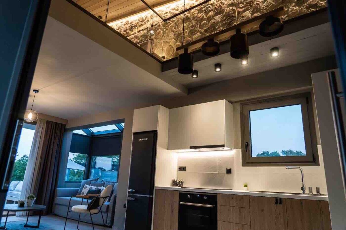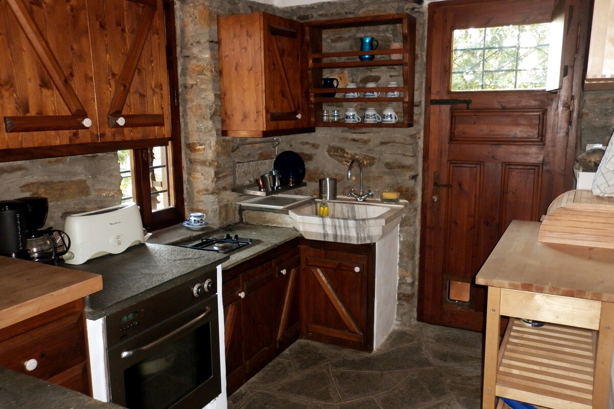 Relax with the whole family at this peaceful place to stay. Villa Tzeni manages to balance local architecture and the modern comforts required for a relaxing hospitality. The location is ideal for enjoying the peaks of Mount Olympus. The center of old Panteleimonas is 200m away while the sea is 10 minutes away by car. Rooms have wooden furniture and stone walls. It has 3 fireplaces, 2 bedrooms, a large bathroom and a toilet. Suitable choice for all seasons.