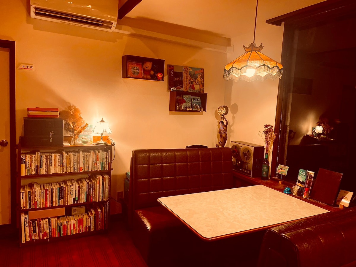 [4-person private room, Sunset Room] In front of JR Iyore-Kamisuwa Station, a coffee shop with a sea view and a retro Showa-era atmosphere