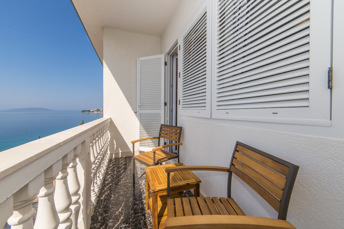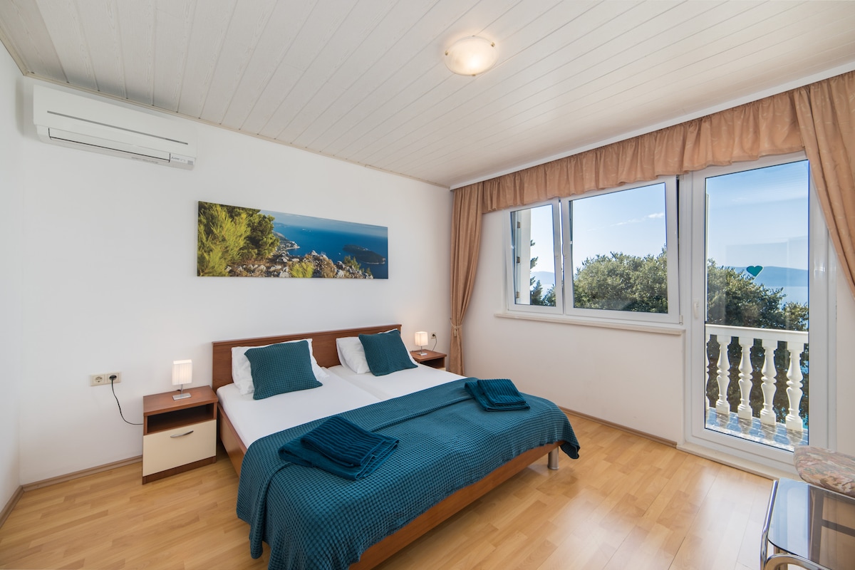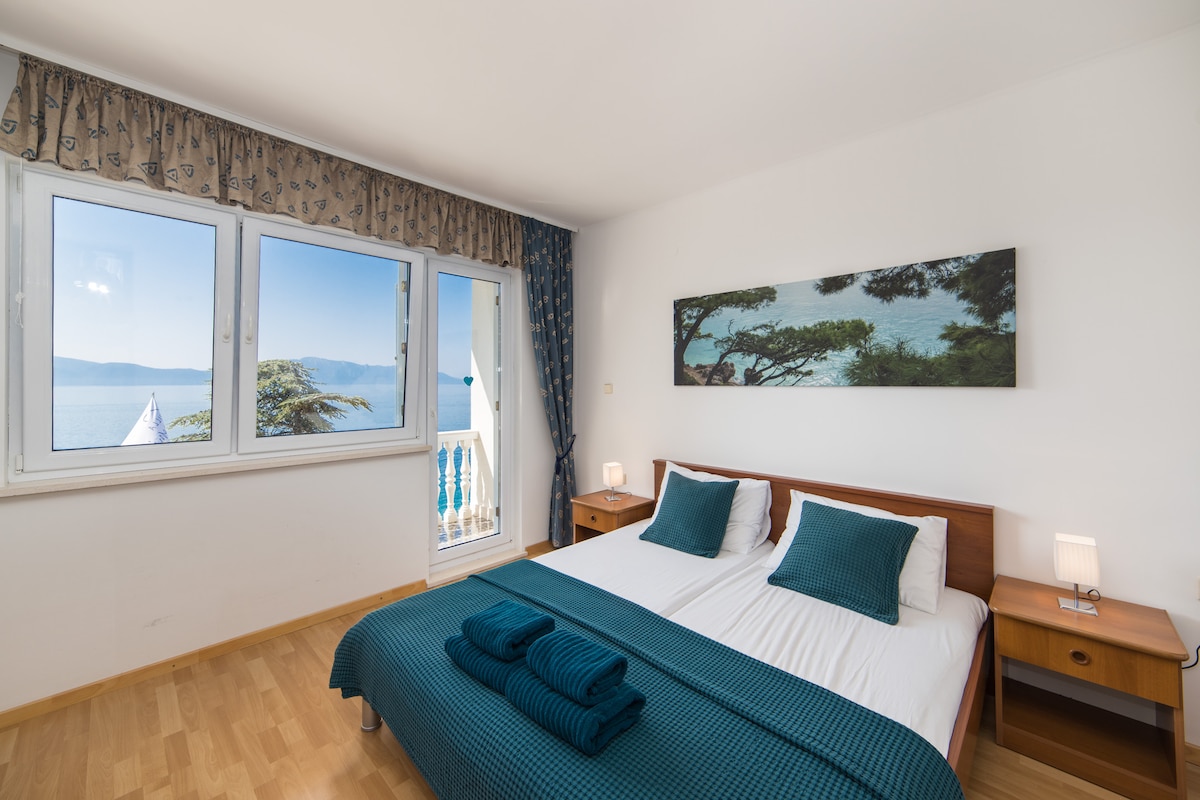 Our home and the town are ideal for peaceful holidays away from noisy streets and crowded places. Apartment has two bedrooms with comfy beds, a spacious balcony with view over olive tree garden and sea. It's professionally cleaned and equipped with everything you need for a pleasing stay. Access to private outside patio with BBQ, TV, seating and view over olive trees garden. WIFI, free parking lot, air condition, TV. Great for families, friends groups, business travelers.