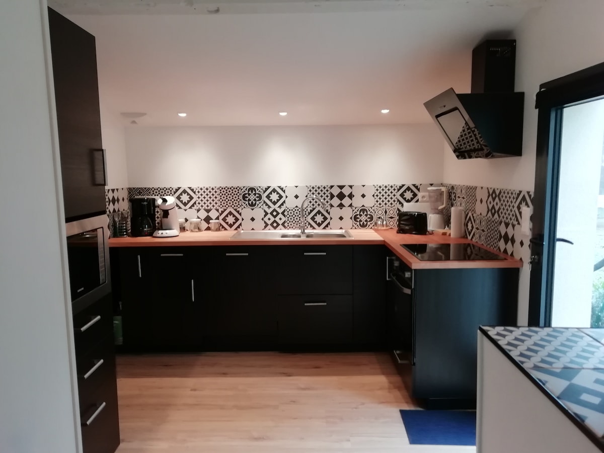 We welcome you in a small house of 40 m2 in front of ours (separated by a terrace of 8 to 10 m). You will stay in a large room comfortably furnished, overlooking a terrace at your disposal (we do not use it when you are present, excluding cleaning/watering), with sleeping on mezzanine. Shower room, sink and separate toilet. The electric heater is completed by a wood stove (wood provided) .