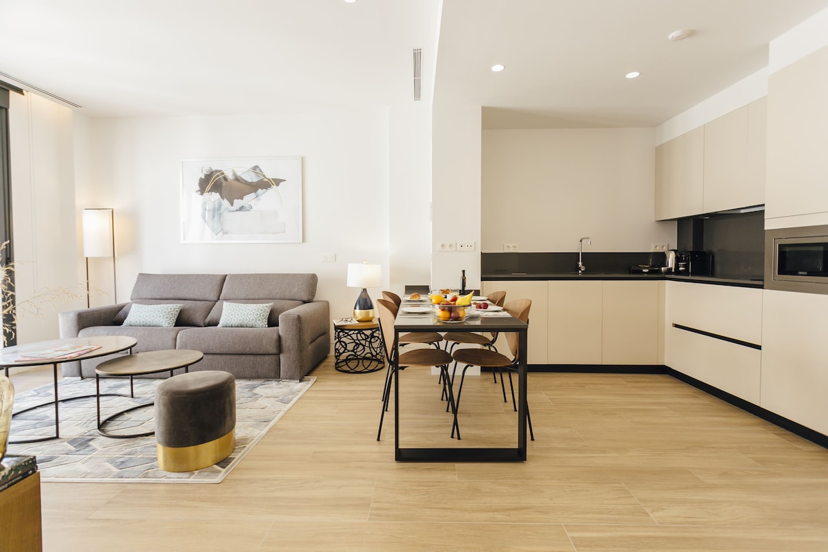 This luxurious apartment is located in the heart of Seville, facing the three UNESCO World Heritage monuments: the Cathedral, the Giralda, the Archivo de Indias, and the Royal Alcázars. With a modern design, it features 1 bedroom, 1 bathroom, a living room with a Smart TV, and a fully equipped kitchen with high-end appliances, including a toaster, blender, oven, kettle, and Nespresso coffee maker. Additionally, it has a private terrace with stunning views of the city's main monuments.