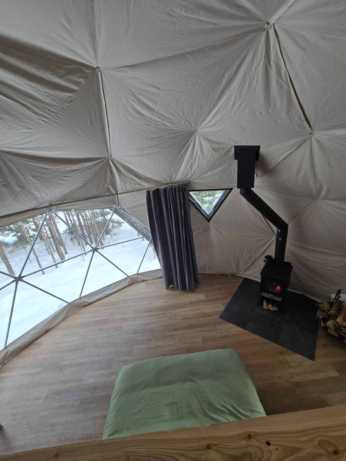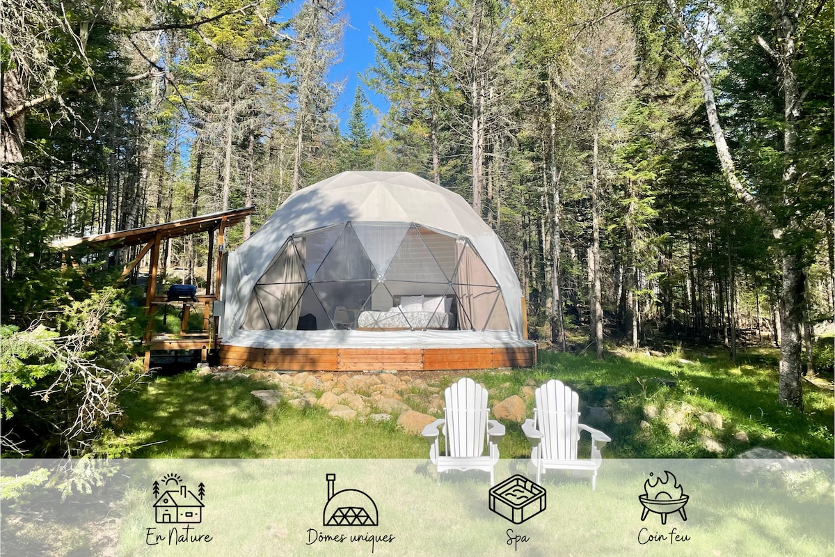 *Expérience sans eau ni électricité* Voici un hébergement de glamping unique située à St-Mathieu-du-Parc. Ce dôme confortable dispose d'un lit queen-size (literie incluse) qui fait face à une grande ''bay window'' avec une vue imprenable sur la belle nature qui l'entoure. Un foyer au bois pour vous réchauffer sera là pour vous accueillir après une journée complète passée à profiter du plein air. Cet espace est unique - et hors réseau/off grid.