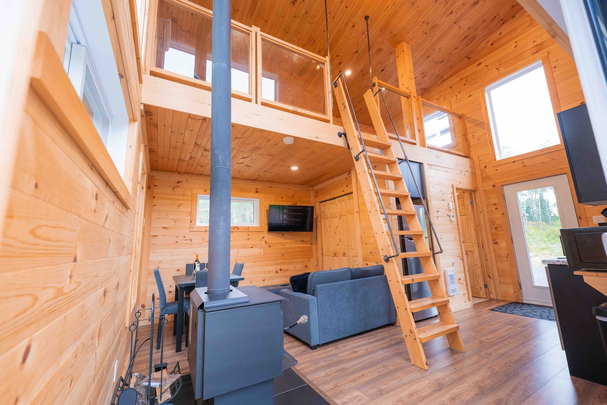 Step into the world of "Ridge View," an upscale tiny-house nestled atop the mountain. Immerse yourself in a captivating scenic experience, a mere 30-minute drive from Old Quebec. Indulge in a breathtaking view of the valleys and mountains, along with awe-inspiring sunsets from the comfort of your bed. Embark on a journey akin to a national park experience through the mountain's distinctive topography by navigating recreational trails accessible year-round.
