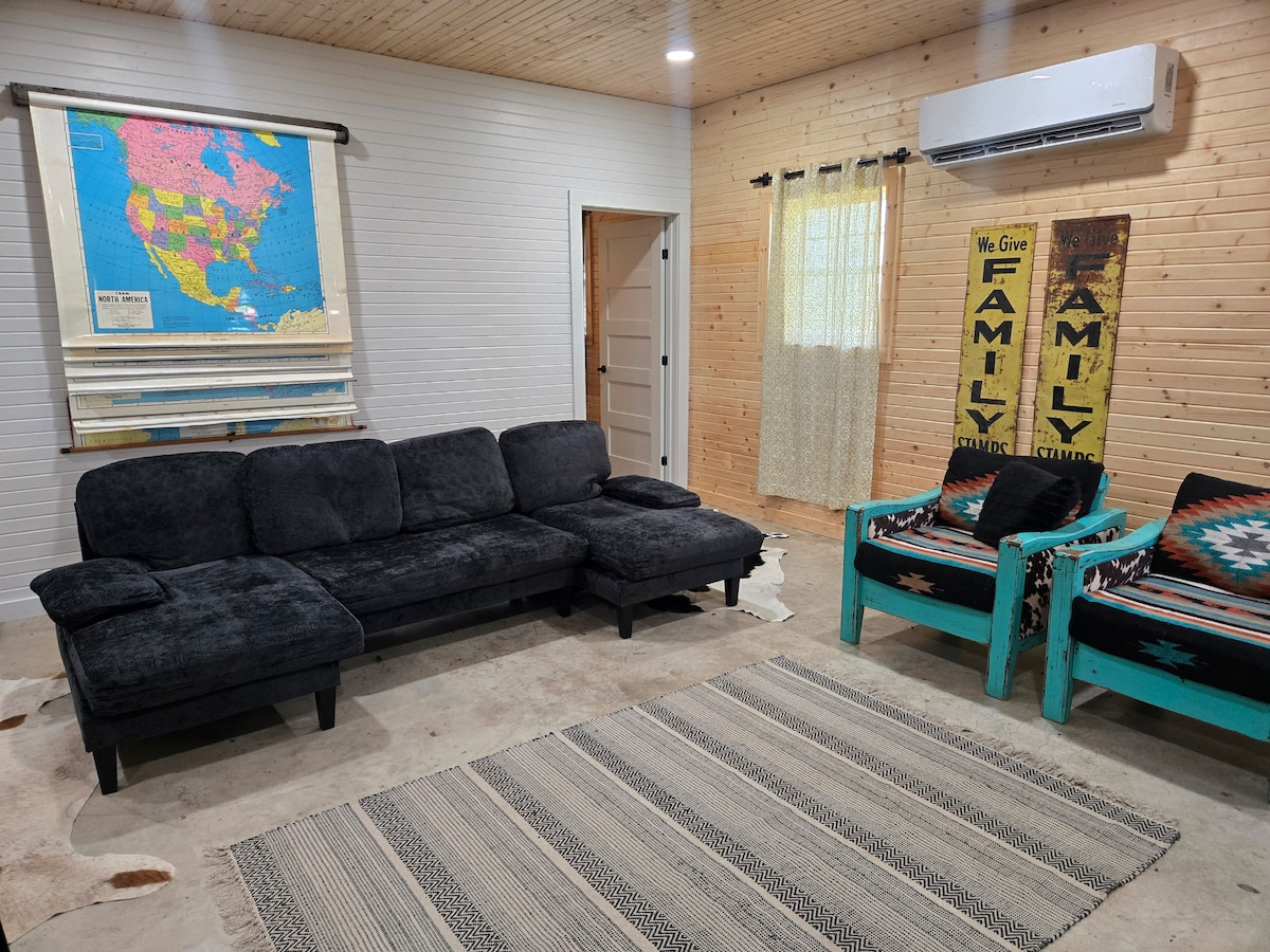 Get cozy and settle into this rustic space! This cozy tiny home is perfect for couples looking to get away from it all. Overlooking the scenic Needmore Ranch and featuring a working water wheel powered by the nearby Stephen's Spring, the Spring House Tiny Home is perfect for couples reconnecting with nature, accessing the nearby Illinois River, or relaxing with that significant other. Guests will have access to over 400 acres of private property to hike, explore, or view the local wildlife.