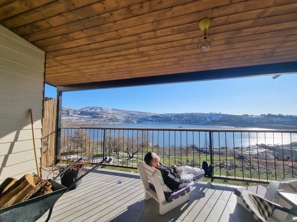 Modern and cozy caravan near Lake Ram with stunning views of Mount Hermon. Enjoy a heated wooden hot tub, a telescope for stargazing, a seating area, and a BBQ station. Inside, you’ll find a comfortable double bed, a fully equipped kitchen, a private bathroom, and air conditioning. Perfect for a quiet and romantic getaway in the Golan Heights.