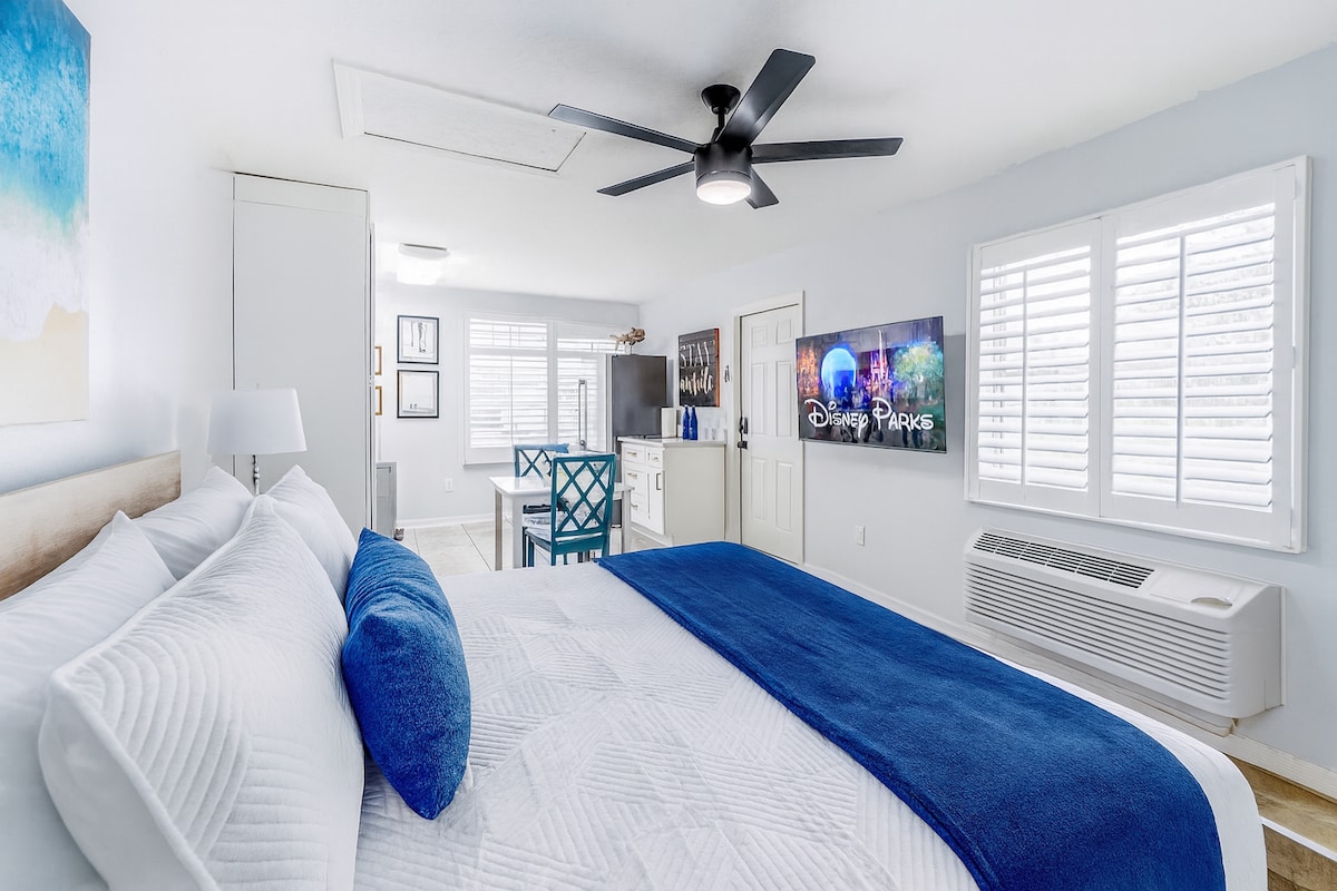 Enjoy a remodeled condo with free shuttle to Disney and Universal, all just minutes away! What’s Included: • 2 Queen Beds • Full Kitchen • Free Keurig Coffee • 55” TV's • Fast Wi-Fi • Free Parking • Heated Pool & Hot Tub • Free Shuttle • Self Check-In Ideal for families, couples, or solo travelers looking to relax after the parks. Disney Springs Magic Kingdom Hollywood Studios Animal Kingdom EPCOT Epic Universe Universal SeaWorld Premium Outlet Mall
