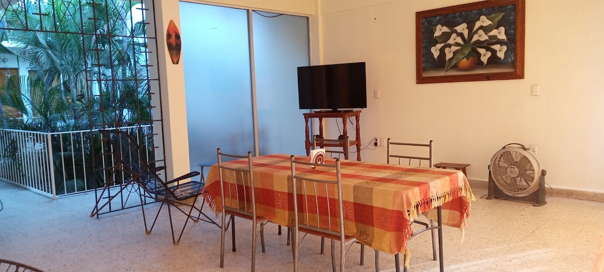 The apartment is located in the historic CASA BLANCA GRAND building, on Cerro la Pinzona, from there you will have privileged views of the bay, the marina and the yacht club. Very close you can take low-cost collective yachts around the bay and La Roqueta island. The depto is furnished and equipped. Living room: queen sofa bed, table and 2 armchairs. Dining room: 1 table and 4 chairs. Bedroom: Queen bed, 2 bureaus and large closet. Kitchen: fridge, stove, pans, plates, cutlery, etc.