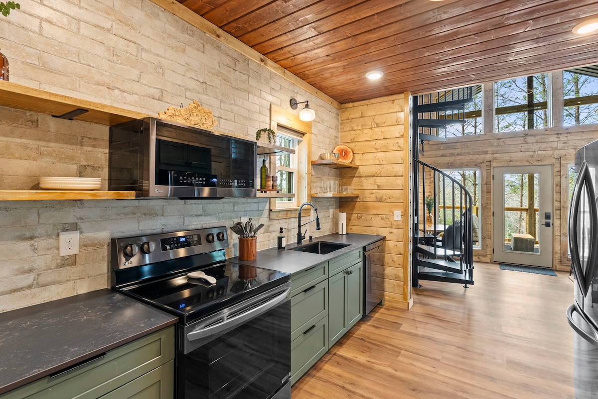 Nestled up among the tree tops, The Maverick invites you to relax and unwind. This 800 sqft cabin is a perfect getaway whether your looking for solitude or adventure. While the windows bring in the beauty of the outside, inside, you'll find yourself enjoying many of the luxury touches this retreat has to offer. This is the perfect home base for your Red River Gorge getaway, located only minutes away from the main attractions and restaurants.