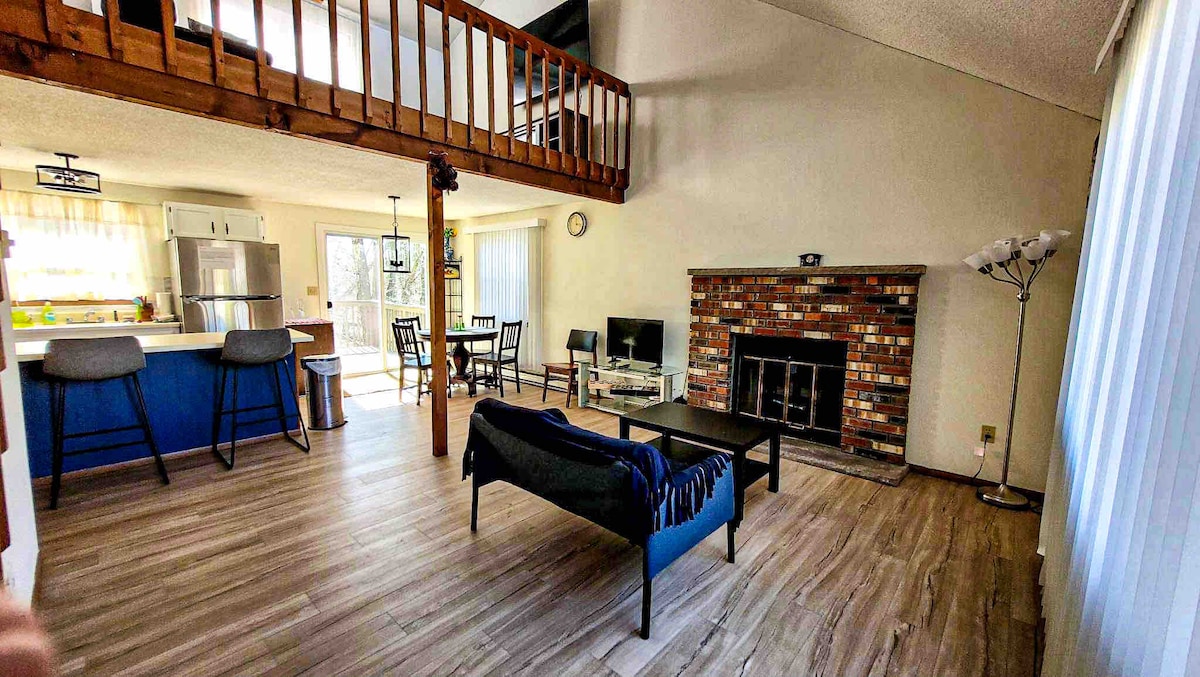 Available now for 3 to 6+ month stays, perfect for travelers, relocating families, or guests with insurance housing needs. Enjoy the summer and fall — with the option to extend! Great DEAL for 30+ Days Experience our 3-story Chalet with an open mind, an appreciation for nature and an eye for design. I welcome everyone who needs an escape from the city. Pick a corner. Enjoy the beautiful water sound from the stream surrounding the House and lower deck by stream. Township Registration #- 009640