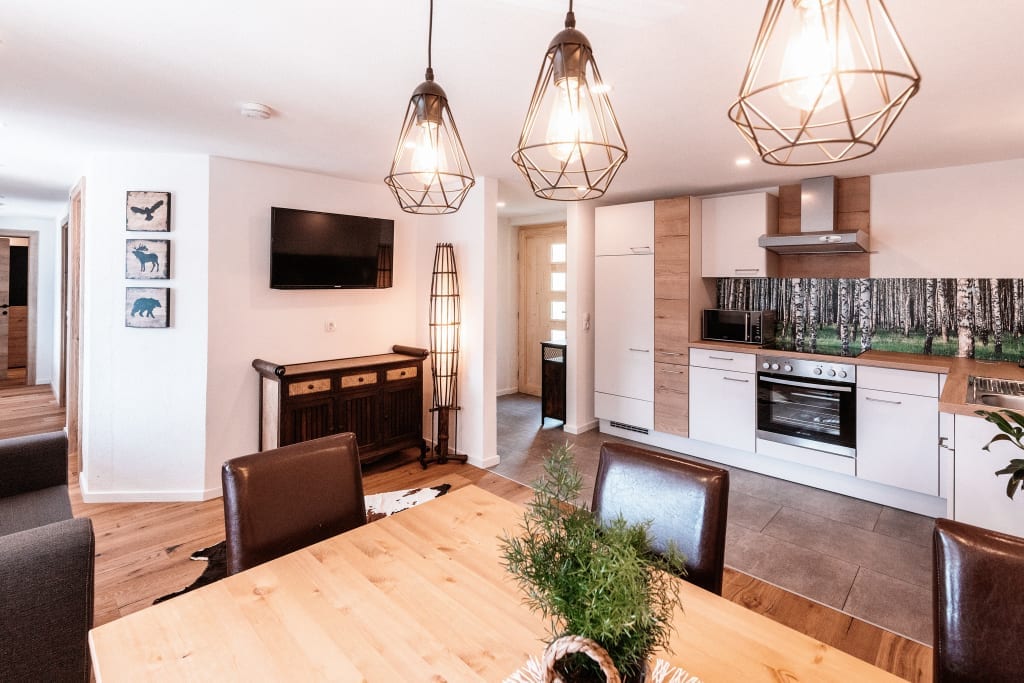 In mitten der Wanderregion und am Rande des Nationalparks, genießen Sie Freiheit und Unabhängigkeit in unserm Apartment, und nutzen Sie alles Annehmlichkeiten des dazugehörigen Erholungshotels 1 Apartment M (ca. 37m2) + Balkon ohne Verpflegung & Reinigung mit 1 x Schlafzimmer mit Boxspringbett + Doppelcouch 1 x Badezimmer mit WC 1 x Wohnküche 1 x Küchenzeile zum selberkochen (Herd, Ofen, Wasserkocher, Geschirrspüler, Mirkowelle & Toaster) 1 x Erstausstattung für Bettwäsche und Handtücher