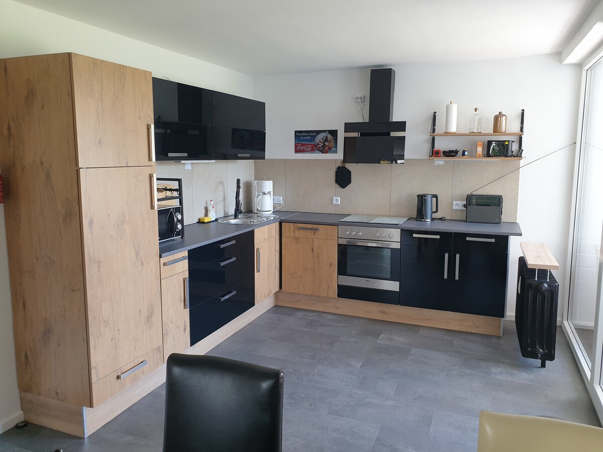 The approx. 41 sqm apartment is located on the 2nd floor. The living room is furnished with a sofa. In the bedroom there is a double bed measuring 1.80 x 2.00 m and a TV. The kitchen with dining area is fully equipped and includes an electric stove with oven, fridge, sink, kettle, toaster, etc. The apartment has a new and modern bathroom. The apartment has recently been completely renovated. The walls were finished with anti-mold panels and plaster.