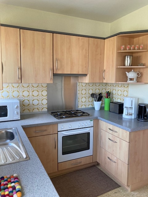 Relax and enjoy the recreational areas... you can do that in our bright, friendly apartment. In addition to a spacious living/dining room and a double bedroom, another bedroom with a single bed is available. On the pull-out couch in the living room, a 4th person to sleep. The large balcony, which faces south, is accessible from the living room and bedroom. An additional kitchen balcony invites you to morning coffee :-)