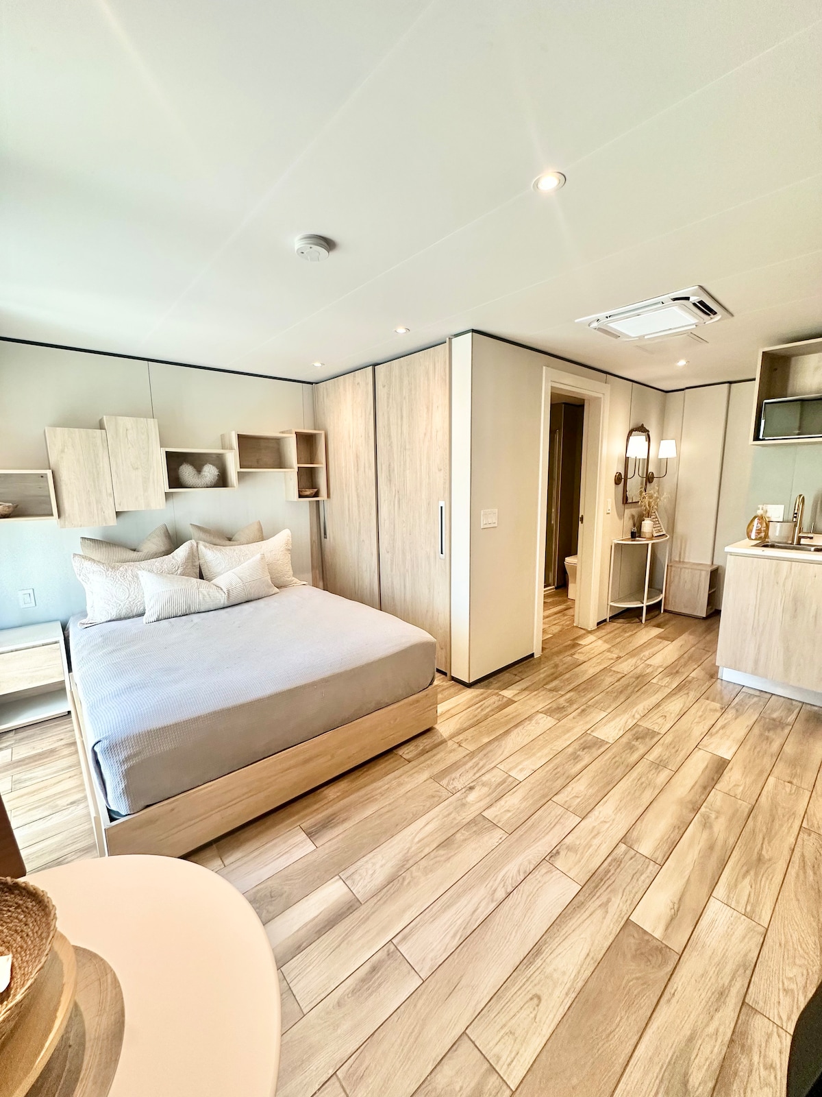Large, high-quality studio, spacious and bright, confort plus with private bathroom. • Tastefully decorated, cozy and tropical decor • Cleanliness guaranteed • Swimming pool • Air conditioning • King-size bed • WiFi & TV • Equipped kitchen • Ground floor with garden and covered terrace • Prime location in a quiet and leafy residence, ideally situated. Close to the marina, city center, shops, restaurants, ferry terminal, promenade, and more.