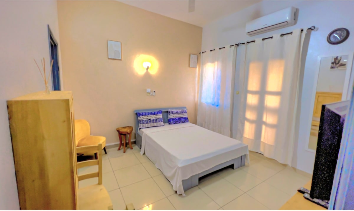 Ce logement affiche un style résolument unique. Situé à 300m de la mer dans un quartier résidentiel sécurisé, il est proche du plus grand centre commercial, de l’aéroport, de l’ambassade des USA et de celui de la France. Il affiche un style Soft, Frais et Unique. C’est l’endroit idéal pour passer ses vacances.