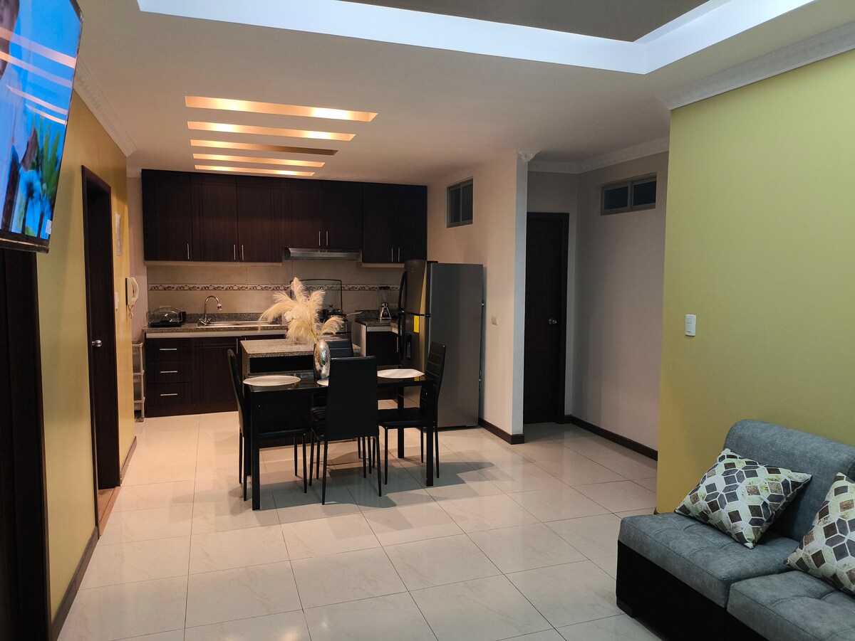 Central apartment right at the Reina del Cisne stadium. Enjoy a stylish experience at this centrally located accommodation. Completely new, with all its luxury finishes, ready to make your stay as pleasant as possible, it is located close to all restaurants, churches, banks, etc. Located in a quiet and safe neighborhood.