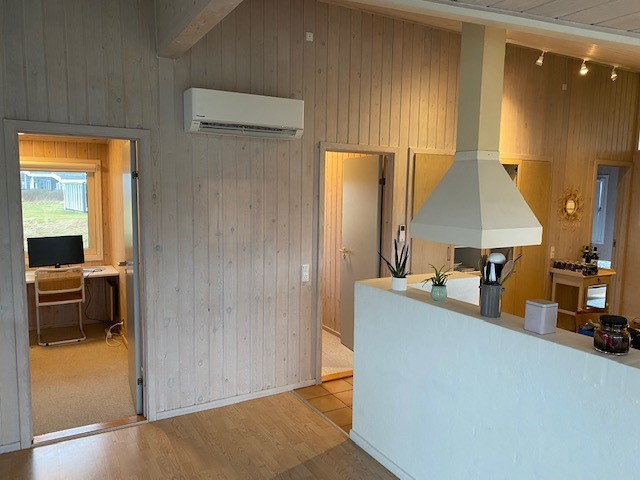 Lovely Holiday Home in beautiful and preserved nature between Blokhus and Løkken. Only 2 min walk from gorgeous beach. From the large terrace facing south you have a scenic view of the beautiful and preserved nature incl. great views of the dunes. Open kitchen and living room, 3 bedrooms + elevated area with + 2 beds. The house is well-kept with furnishings in traditional Danish cottage style. Electric radiators / wood-burning stove for low-cost heating. Fast wifi 500/500. 5km to supercharger.