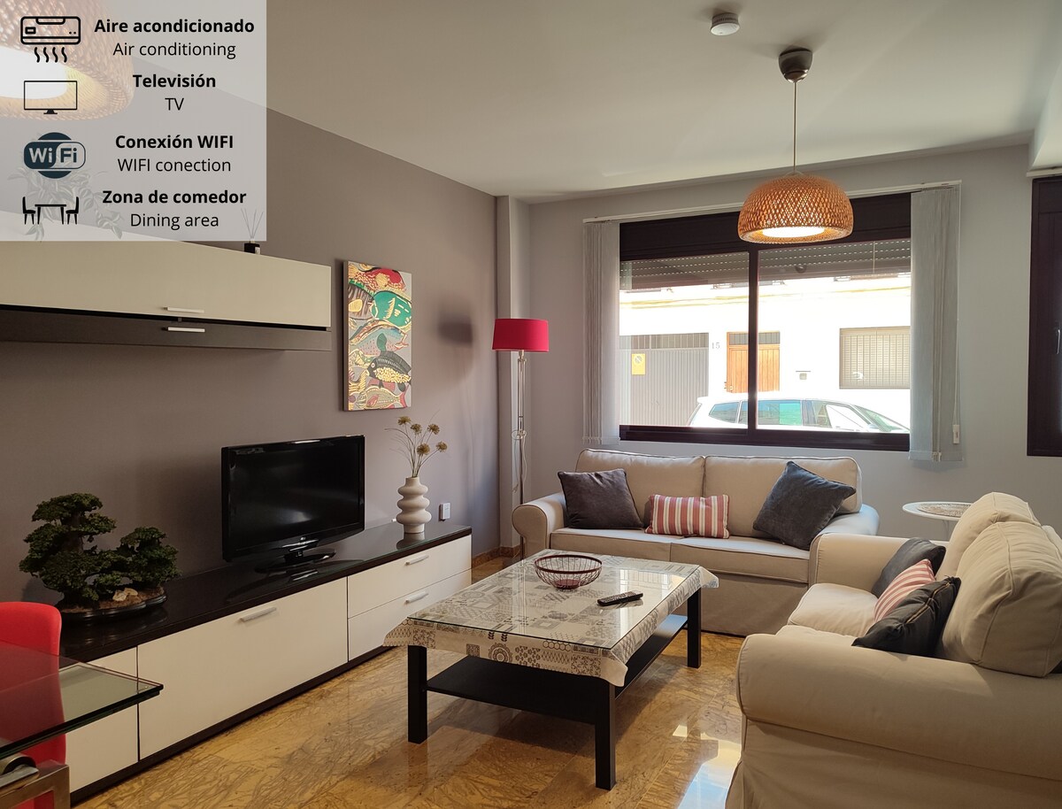 1 bedroom apartment on the ground floor, with centralized air conditioning, sofa bed in living room and full kitchen. It has a bedroom with a 150 cm bed, a comfortable sofa bed of the same size, a patio, a separate bathroom and a fully equipped kitchen. Easy access. It is comfortable and quiet, it is well located in a quiet and safe area. It is located next to the Paseo Vial Norte and Hotel Córdoba Center, 10 min walk from the center, 12 min from the station (Bus and Renfe),close to the Centro Comercial La Sierra