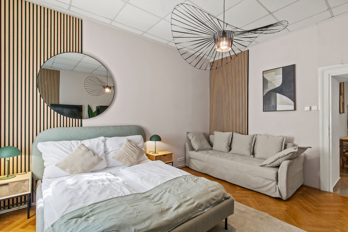 This is a very light big apartment, located on the sunny side of the building, (3rd floor without elevator) and also is in walking distance to the Danube. Very calm, family place:) There are 2 separate bedrooms and a living room with sofa with bed-function. Apartment is 15 min away from city center (Stephansplatz), using public transport. Also there is a direct train from airport right in houses neighborhood. All grocery stores are in 1 min walkway. (Billa, Hofer)