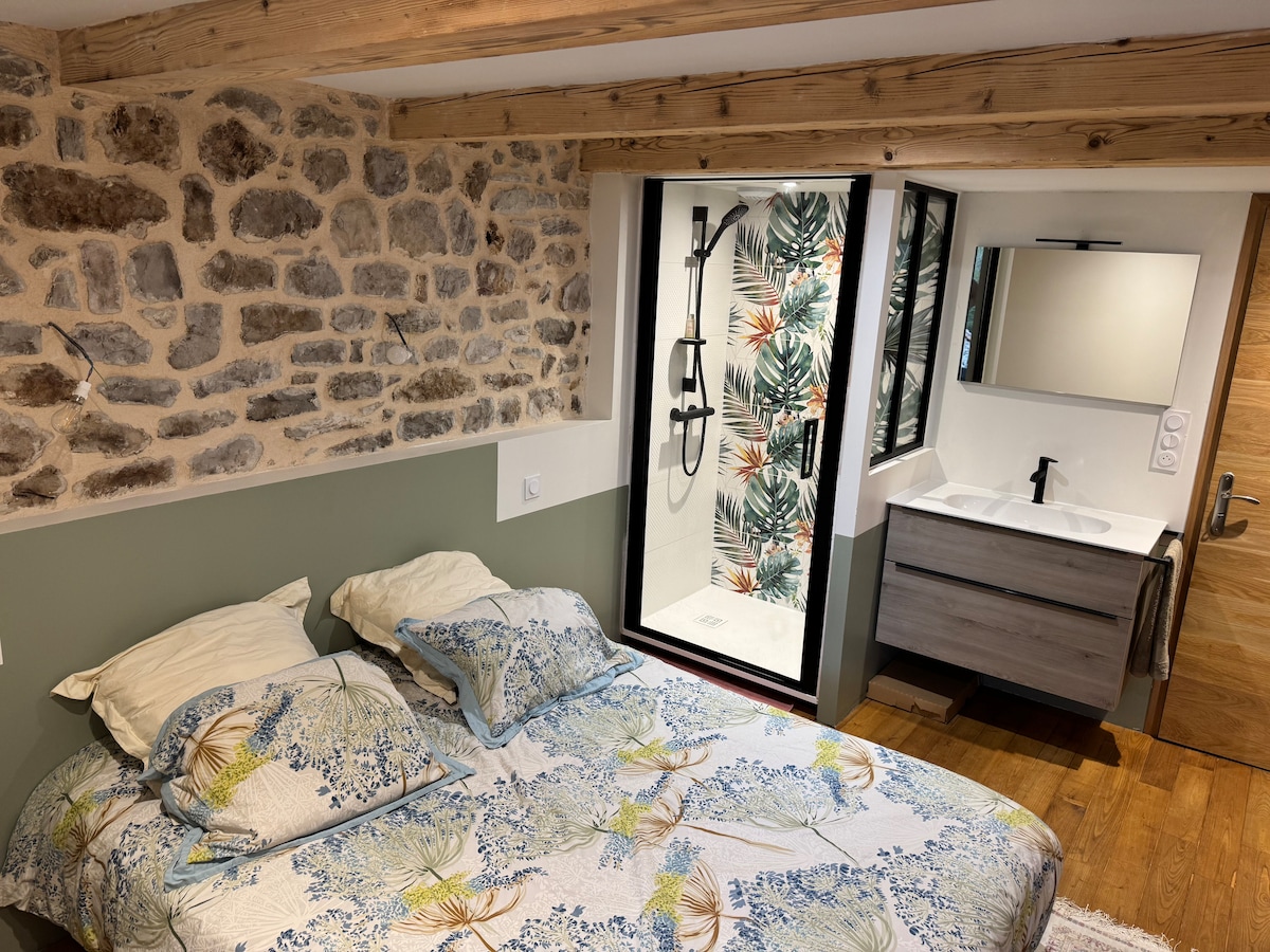 Relax in this 16th century chestnut drying room (former chestnut dryer) transformed into a studio with large private terrace. Le Mas du Ponteil welcomes you in its green and tranquility with grandiose views of the Cevennes. 15 min. from natural swimming spots, walking distance for hikers, forest walk. The studio is equipped with its kitchenette and a bathroom with a canopy bed.