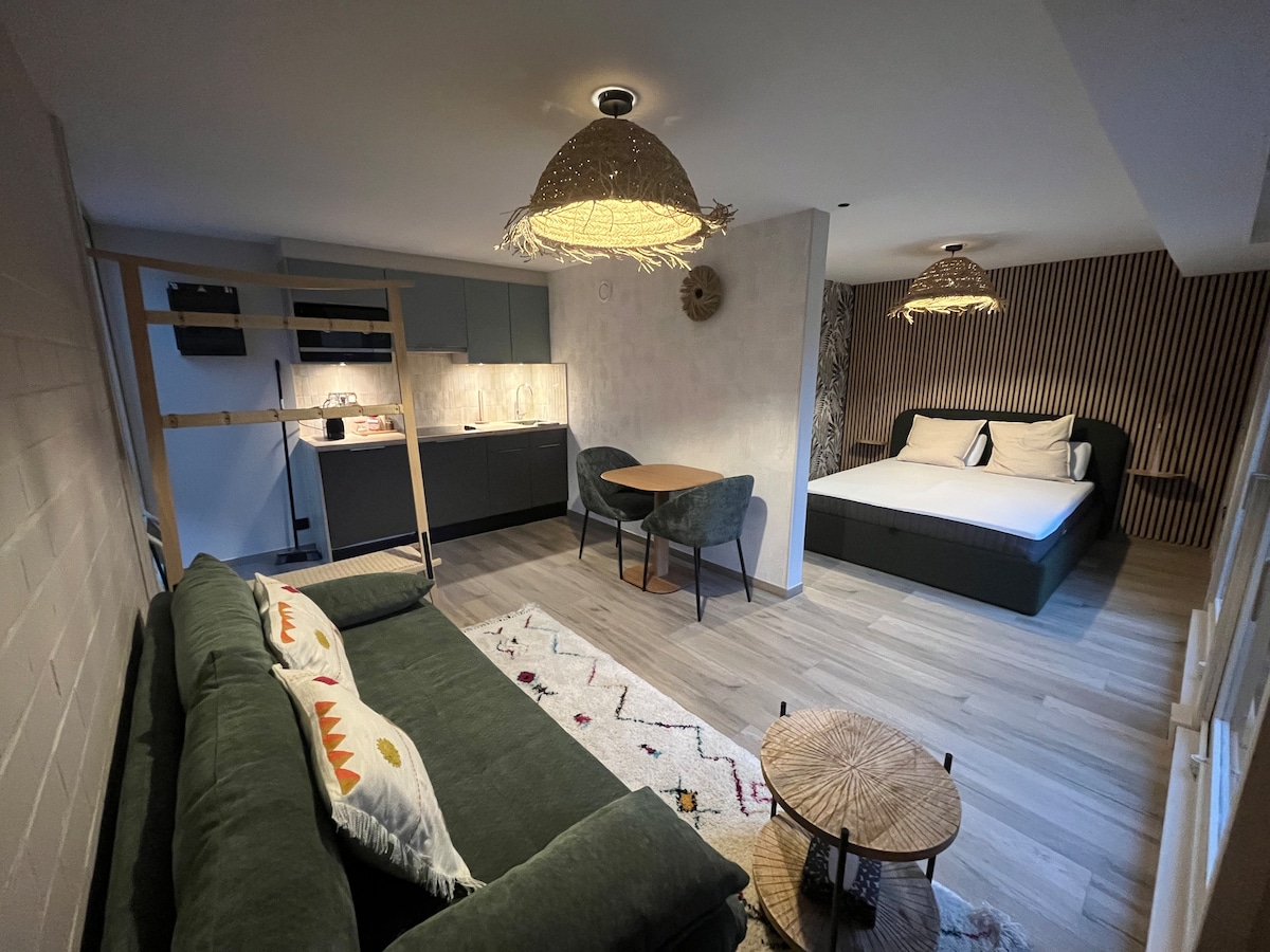 We will welcome you to a brand new studio in the heart of the Attert Valley. This loft will offer you a view of horses in high season and allow you to listen to the birds singing from dawn. It consists of a kitchen equipped with a friendly central island, walk-in shower and partly covered terrace. Have a pleasant stay discovering all the hikes and activities around L'Arrêt 517! It is also ideal for trips to Arlon or Luxembourg.