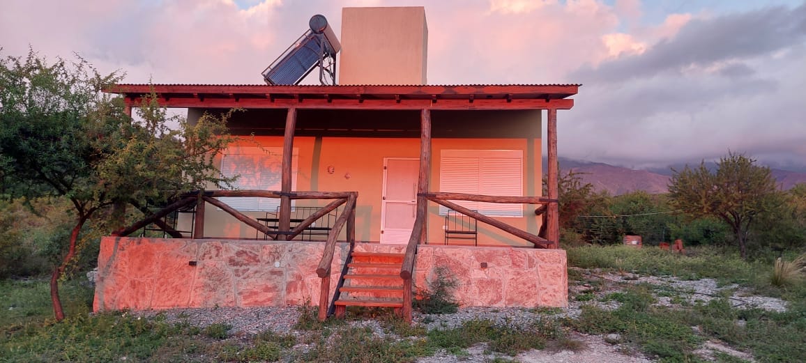 Recently finished cabin of adobe and stone, wooden floor and lots of light. At the foot of Cerro Champaqui with its own descent to the creek. A rural and quiet place, street of land, silence and peace in nature. Salamander warm in winter and fresh summer. Termo solar tank, natural harmony. Ideal for lovers of silence and nature.