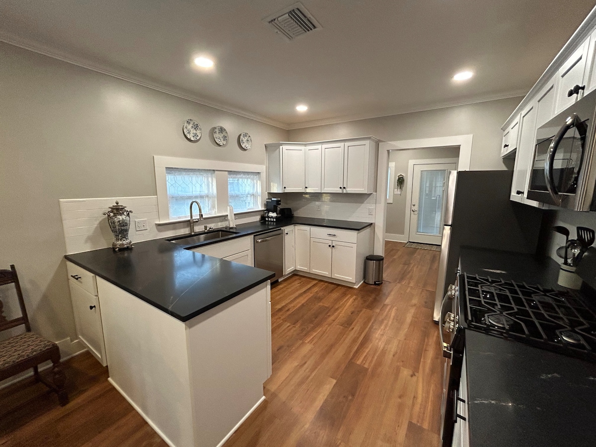 Kick back and relax in this calm, stylish space. Don't forget your boat because we have enough room to park it! Restaurants and downtown in walking distance. Come and discover this quaint little town with big city amenities. Enjoy the historic feel of our cozy cottage with the advantages of new and modern finishings. This home is perfect for all fishing trips, historic town tourist, festival goers, and any weekend getaways.