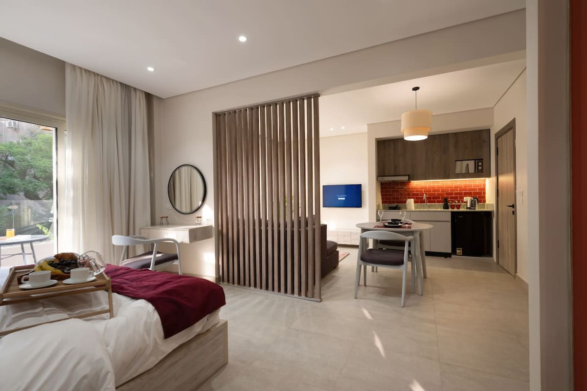 Stylish Newly Renovated Studio with Garden View in Sarayat Maadi Perfect for business trips, solo travelers, and couples, this studio offers a peaceful garden view. Located on Road 11 in Sarayat Maadi, the apartment features Wi-Fi, a double bed, smart TV, and a fully equipped kitchenette and bathroom Just a short walk to the metro and Road 9, you’ll be in the heart of the area, with easy access to local shops , Plus, Ratios Bakery is right downstairs, perfect for a quick snack or fresh coffee