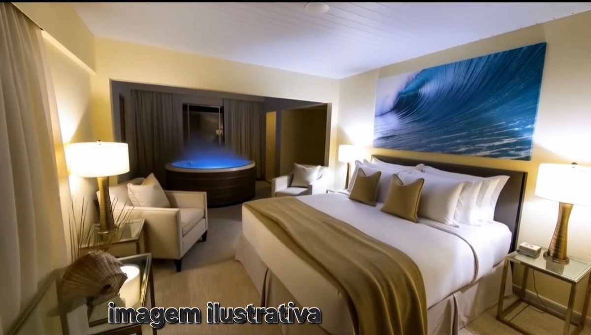 And a wonderful two-story penthouse, with the most beautiful view of the city to the Imboassica Lagoon. It has three complete en-suites, one of them with a whirlpool bathtub. Large rooms overlooking the lagoon and a closet. Gourmet kitchen connected to the dining room. Fully glazed living room, overlooking the outdoor area and swimming pool. Barbecue next to the pool with side table. Steam sauna.