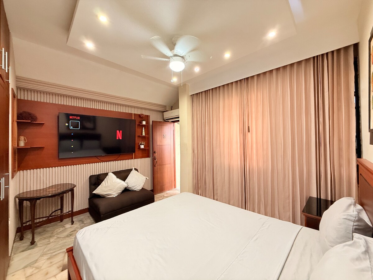 Exquisita suite en una urbanización privada con seguridad las 24 horas, diseñada para ofrecer confort y modernidad. Disfrute de acceso privado y un elegante espacio decorado con atención a cada detalle. La suite ofrece un amplio parqueadero para más de un vehículo. Le garantizamos una atención personalizada para que su estancia sea inolvidable. Reserve ahora y descubra el lujo y la tranquilidad en un entorno exclusivo y acogedor.