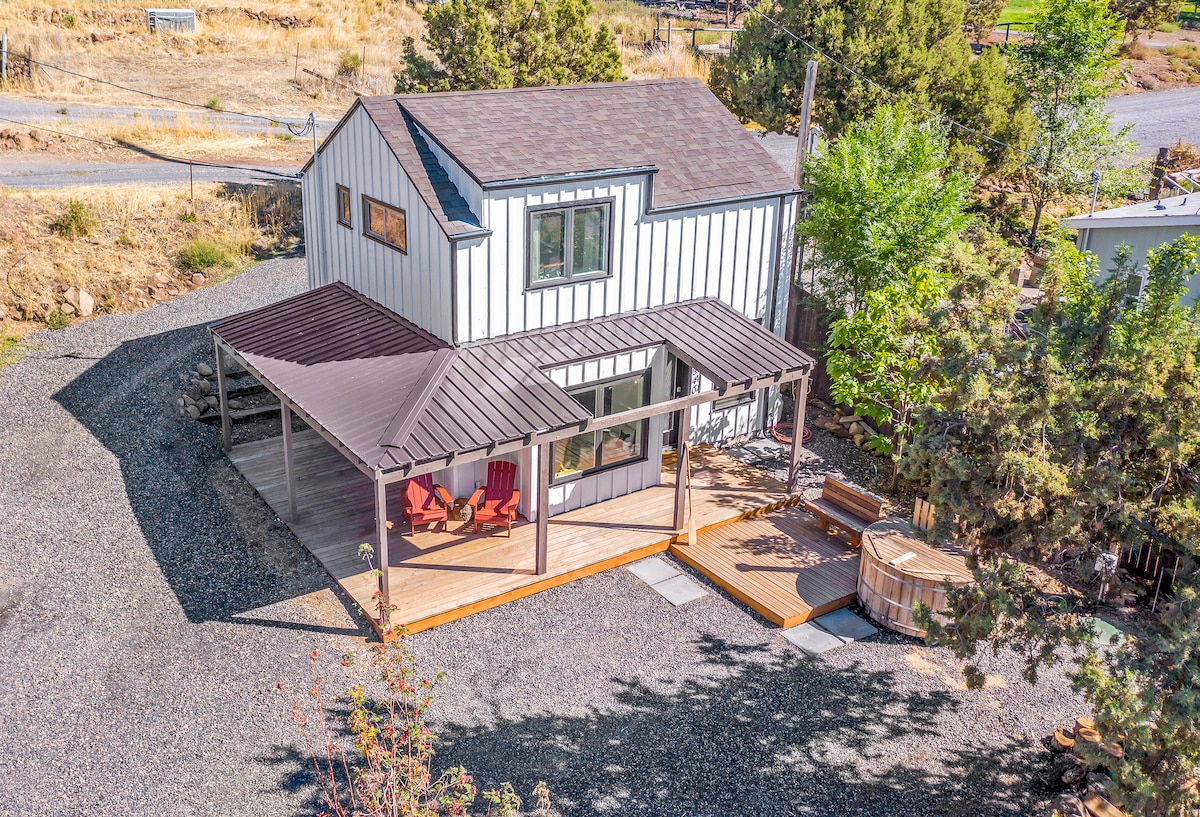 This gorgeous, welcoming, solar-powered house offers self check-in, speedy WiFi, and complimentary craft beer and coffee. It's located just a couple blocks from downtown, 5 minutes from the airport, 10 minutes from Crooked River Canyon, 15 minutes from Smith Rock, and 20 minutes from Bend. 4 breweries & 3 taprooms are located less than 6 blocks away, and tons of restaurants & shops are close by. Amazing nearby hiking options abound. This space is half of a duplex. No pets or parties allowed.