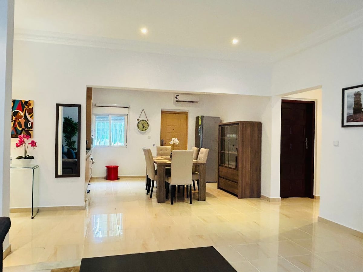 ¡Confort y seguridad en Malabo! Amplio apartamento moderno, ideal para ejecutivos o familias. Disfruta de: Wi-Fi de alta velocidad y TV con canales internacionales. Seguridad 24h y aire acondicionado en todas las estancias. Cocina completamente equipada, lavadora, secadora y kit de planchado. Ubicación TOP: A <10 min de 2 supermercados y 2 excelentes restaurantes (puedes ir a pie). Hablo español, inglés y francés para facilitarte todo. ¡Tu mejor estancia en Guinea te espera!