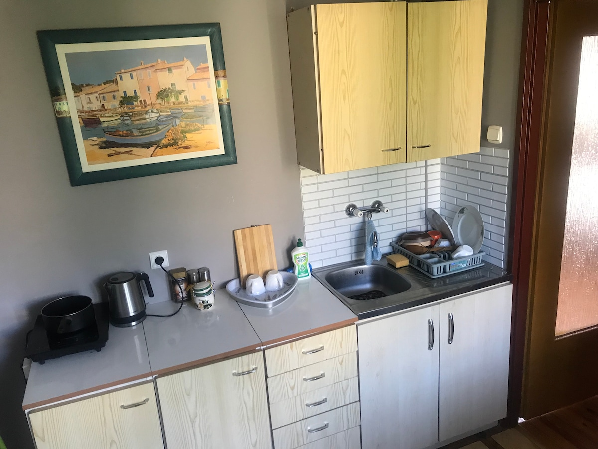 Zapraszamy do naszego pięknego mieszkania w starym domu z 1930 roku, który przeszedł gruntowny remont aby odzyskać stary, oryginalny styl. W domu można napisać list na starej maszynie do pisania, zobaczyć jak wyglądał kiedyś telefon, spróbować zrobić zdjęcie 50-letnim aparatem oraz wypocząć w ogrodzie z grillem. Dom jest otoczony zielenią i zlokalizowany jest w cichej, spokojnej okolicy. Dom jest podzielony na dwa mieszkania, u góry mieszkają gospodarze, a dół jest wynajmowany dla turystów.