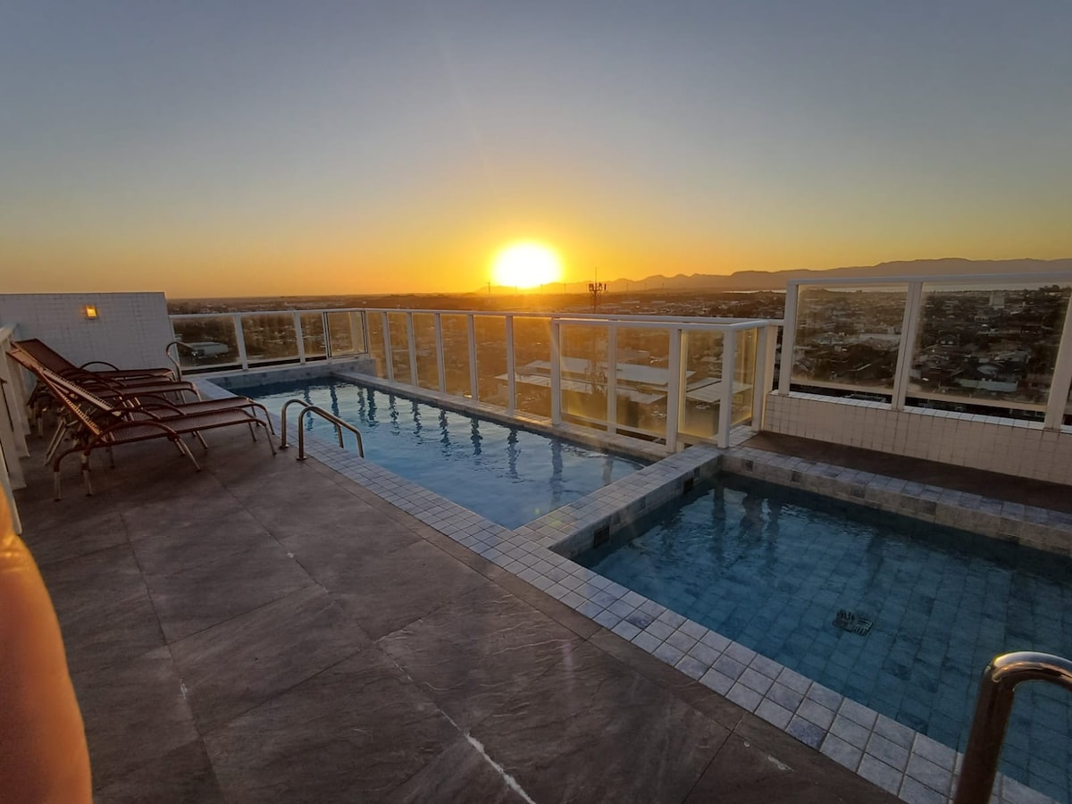Apartamento com vista e uma quadra do mar, central