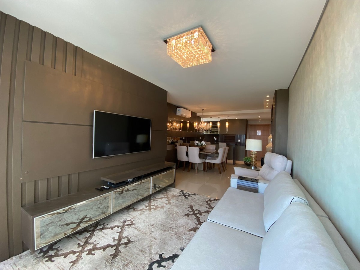 Brand new loft. View of the social area. Garage. Privileged location next to Ramblas Atlântida, 100 m from Planeta on Av. Central, Livin Resort building. Accommodates 3 to 4 people, shops and restaurants nearby. -Infra: Swimming pool, fitness center, sauna, 6 ballrooms, thermal pool, playground. -Contém: Smart TV, WiFi, oven, microwave, air conditioning, refrigerator, stove, hood and utensils. Linen and towels included. -Other observations: Pets not supported 1 double bed and a sofa bed.