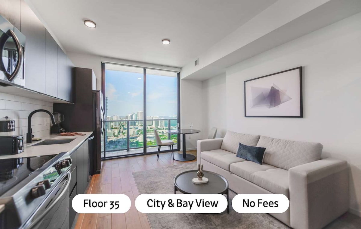 Gorgeous Condo with spectacular breathtaking views & Refined space OCCUPANCY RULES: Building allows 2-3 Adults or 2 Ad + 2 kids in unit. *Parking garage: $139/fixed fee for entire stay, more parking available by building. Pet allowed up to 35lbs. Our Apartment Space is absolutely gorgeous - just remodeled, clean/new! Look at the pictures at how light, fresh, impeccable, spacious. The water-view from 34th fl is breathtaking and the location perfect for Beach and Bay-side Miami access.